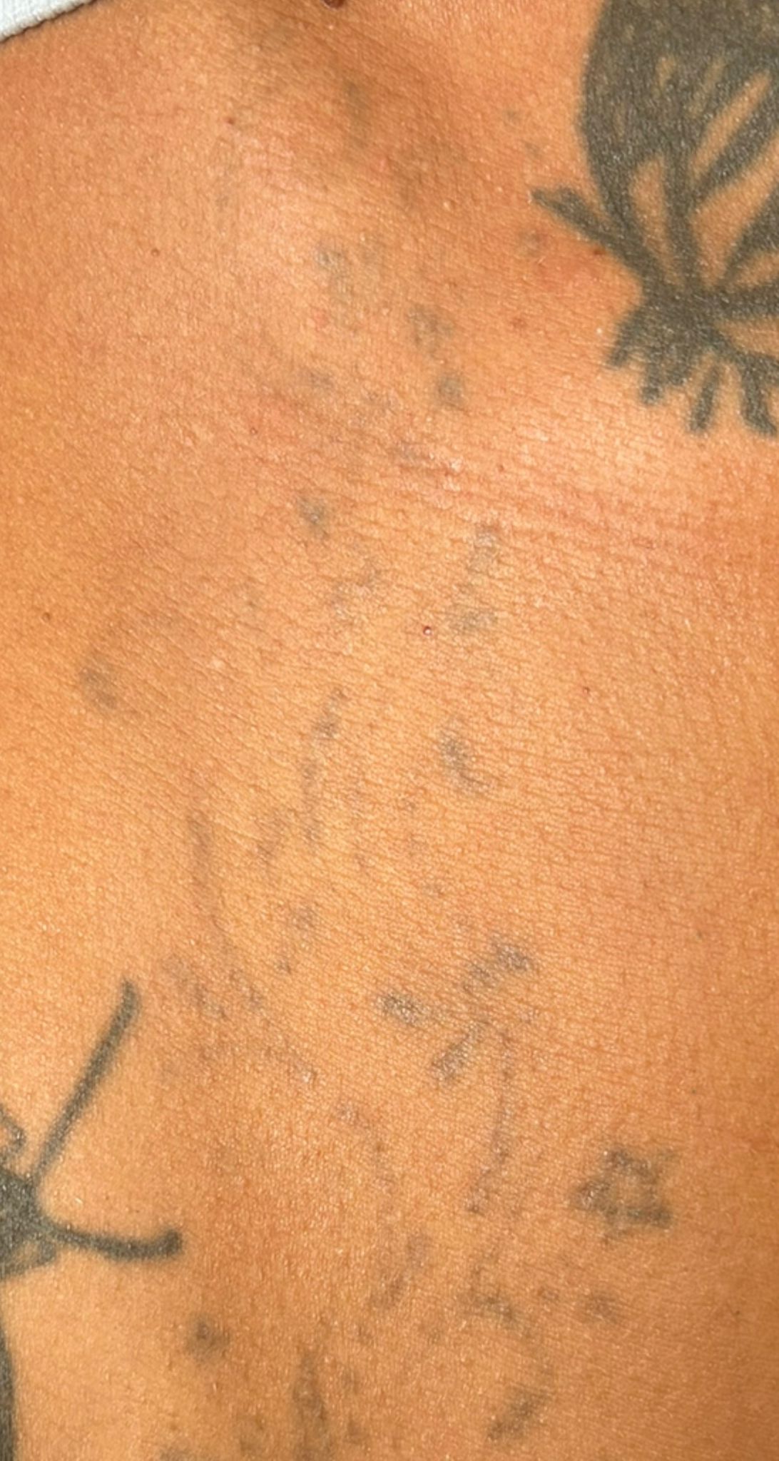 Removal of some older work on a client’s shoulder, to make room for a new tattoo