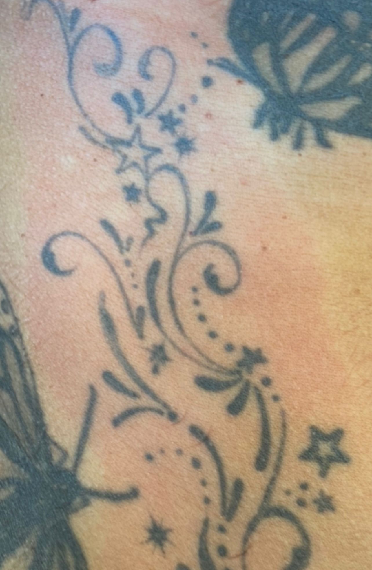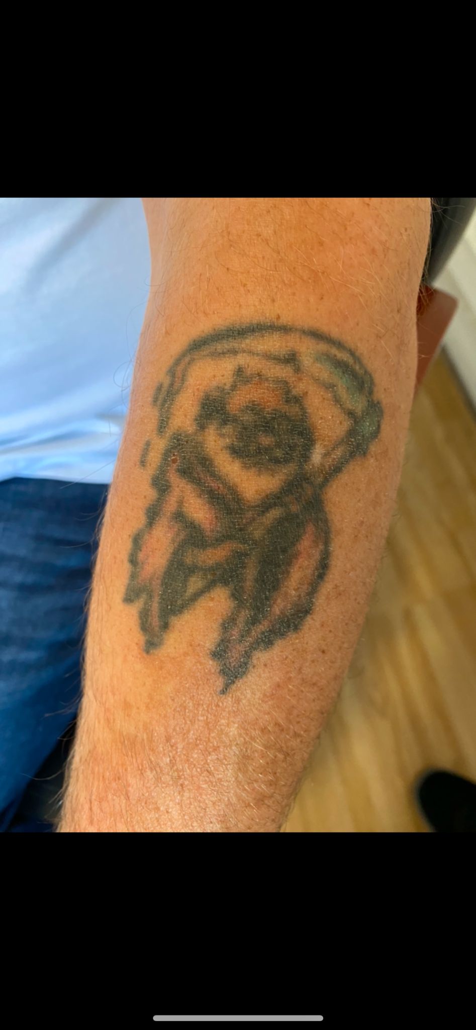 Removal of some older work on a client’s shoulder, to make room for a new tattoo